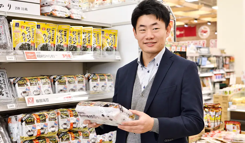 スーパーマーケットの日配部門向けに国内流通食品の卸売り、韓国や中国からの輸入食品の商品開発・調達から営業まで担当しています。